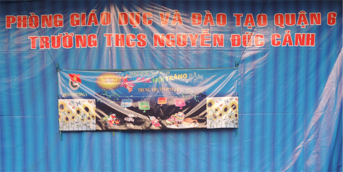 Ngày 9/9/2015 tại trường THCS Nguyễn Đức Cảnh phối hợp cùng Đoàn Phường 6 Quận 6 đã tổ chức chương trình “ Đêm hội trăng rằm” cho các em thiếu nhi, học sinh nhà trường. Tại đây, các em đã được thưởng thức chương trình văn nghệ với tiểu phẩm về sự tích ngày Rằm Trung thu và các tiết mục văn nghệ đặc sắc, tham gia các gian hàng trò chơi dân gian. Cũng trong chương trình, các ban ngành đoàn thể đã trao tặng các suất quà cho các em học sinh có hoàn cảnh khó khăn của phường và trường THCS Nguyễn Đức Cảnh, góp phần giúp các em đón tết trung thu đầy vui tươi và ý nghĩa, phấn khởi bước vào năm học mới.